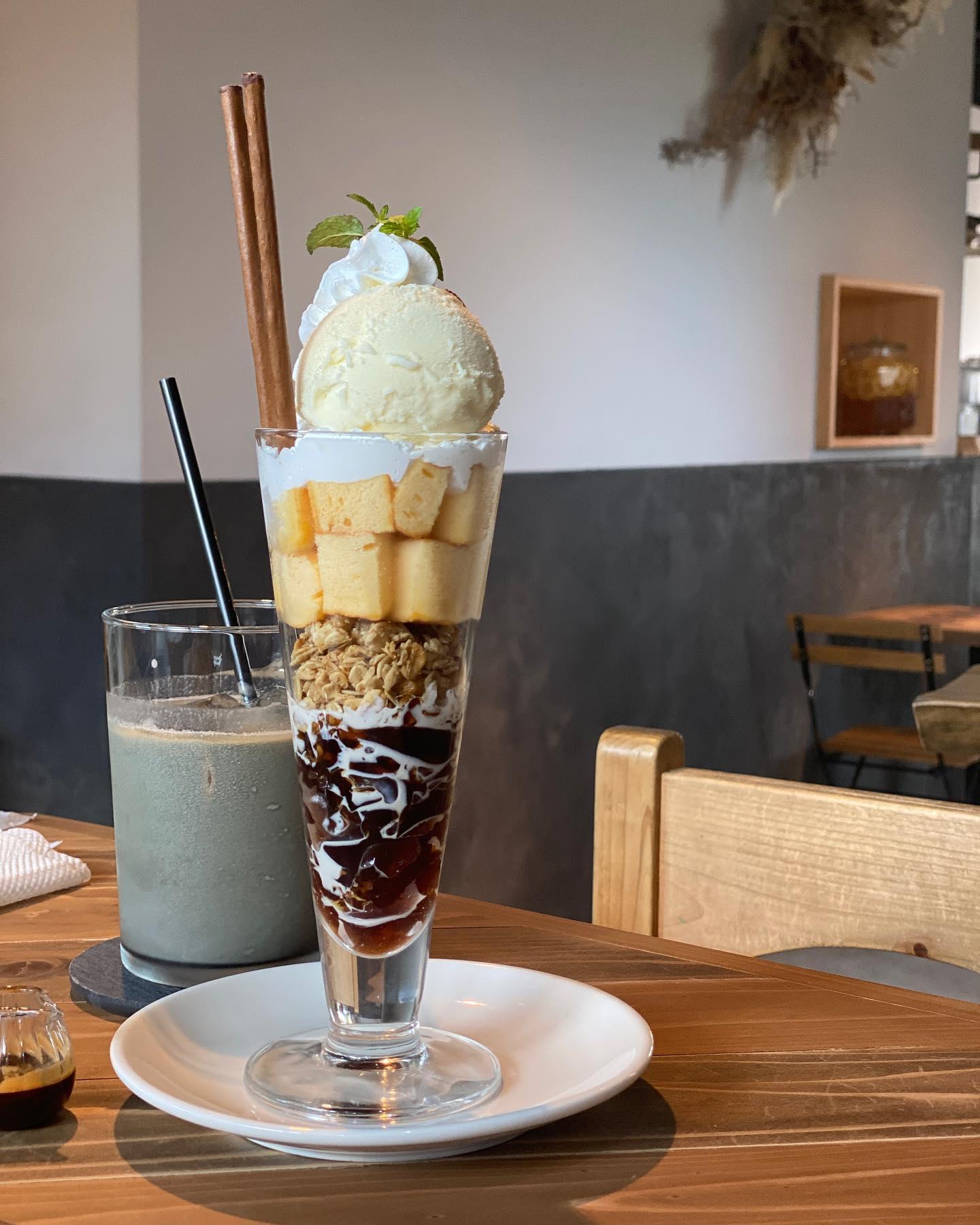 お目当ての炭ラテ+甘くてほろ苦なアフォガートパフェ🍨