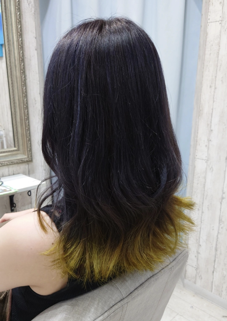 カラーモデルでハイライトと裾カラーの組み合わせで