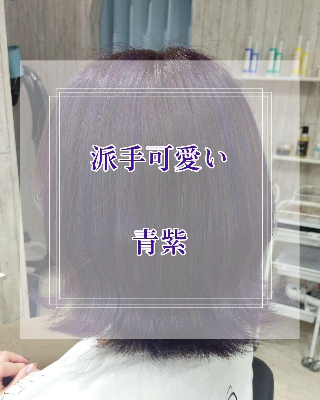 濃い青紫色で可愛い🥰🥰 だけど、ハイライトで作ってるので透明感もあります👍🏻 ̖́-︎ 光に当てると更に綺麗に色が発色します🤍 【熊本美容室シーラ】