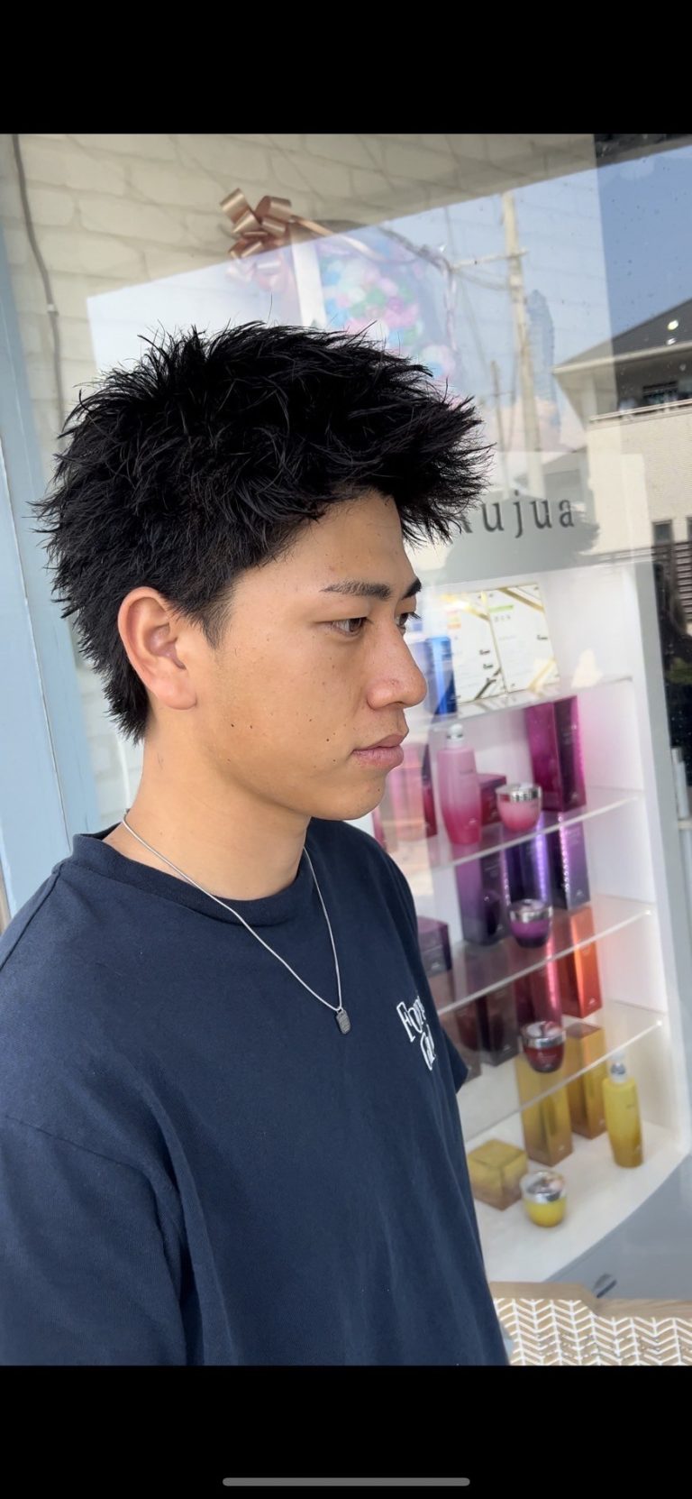 ザクザクな束感がでるようにカットして、もみ上げ襟足を刈り上げないことで、オシャレ感をだしてます!!